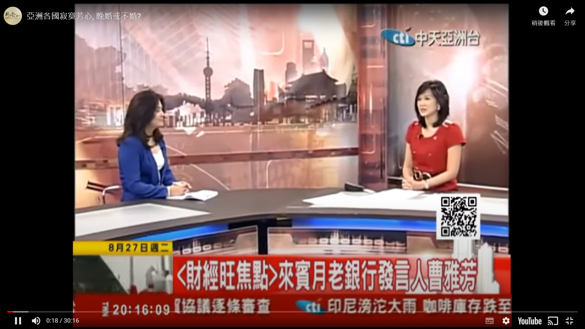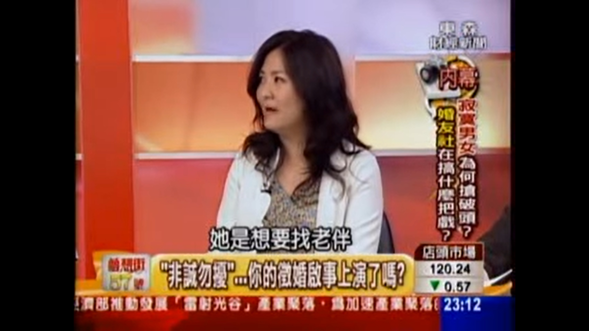 中天亞洲台[ 亞洲最錢線]_2013.08.27 月老銀行公關經理受邀至[亞洲最錢線]節目中,談及亞洲各國適婚男女現況,韓國姐弟戀、日本的單身寄生族及台灣與大陸的婚友社現況比較 ...